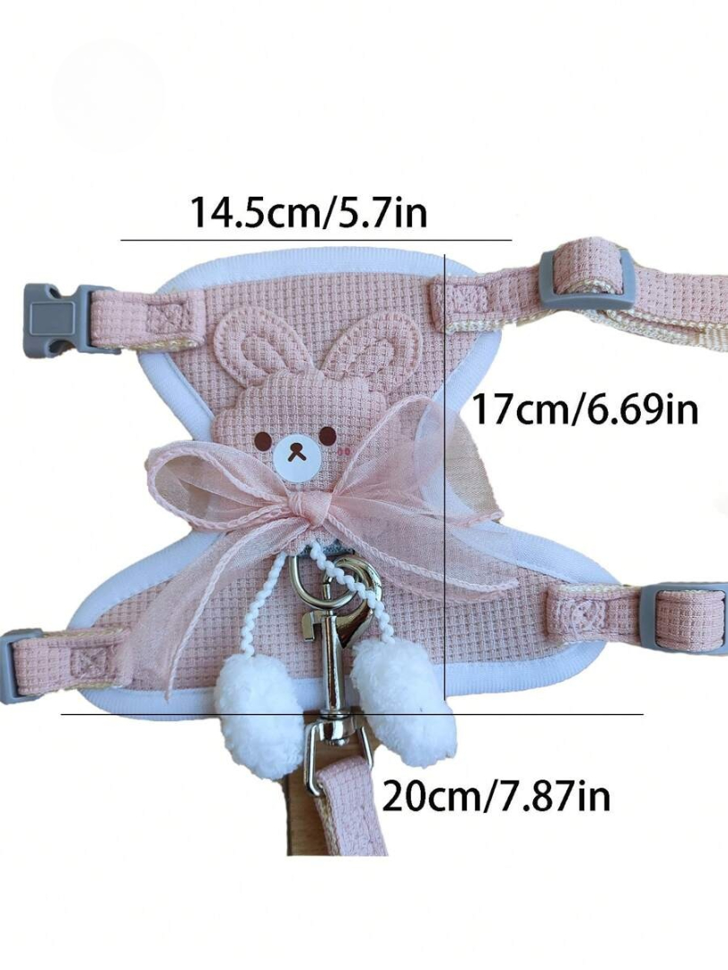 Made from acrylic material, the harness provides a lightweight and structured design that supports regular use. The matching leash offers a reliable connection, allowing controlled guidance during outdoor activities. The buckle system allows quick fastening and removal, making preparation simple and convenient.