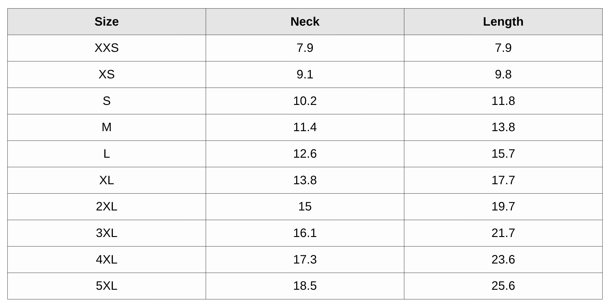 Size Chart(inches):