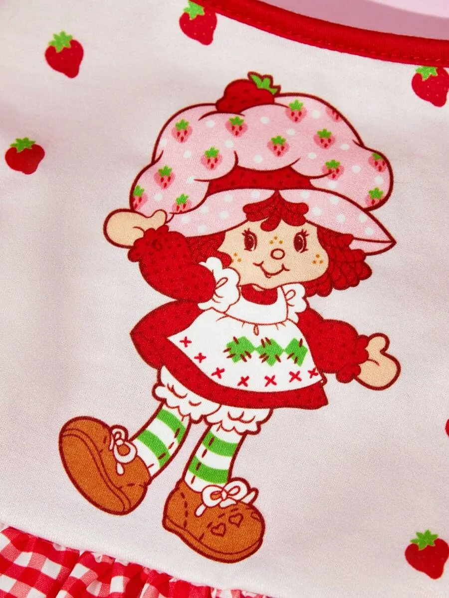 • Design: Strawberry print with plaid skirt