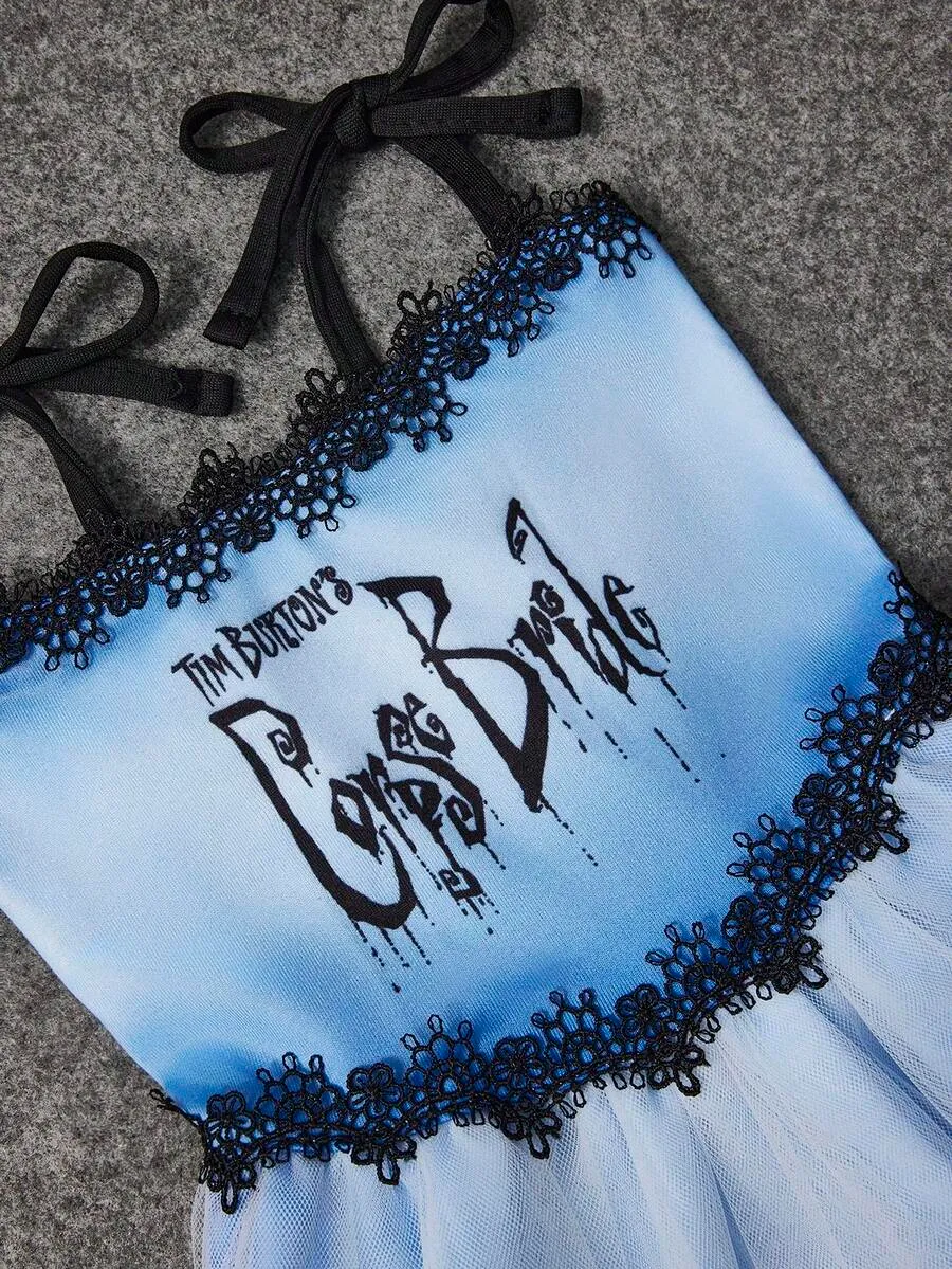 Cartoon Design Pet Dress With Lace Details