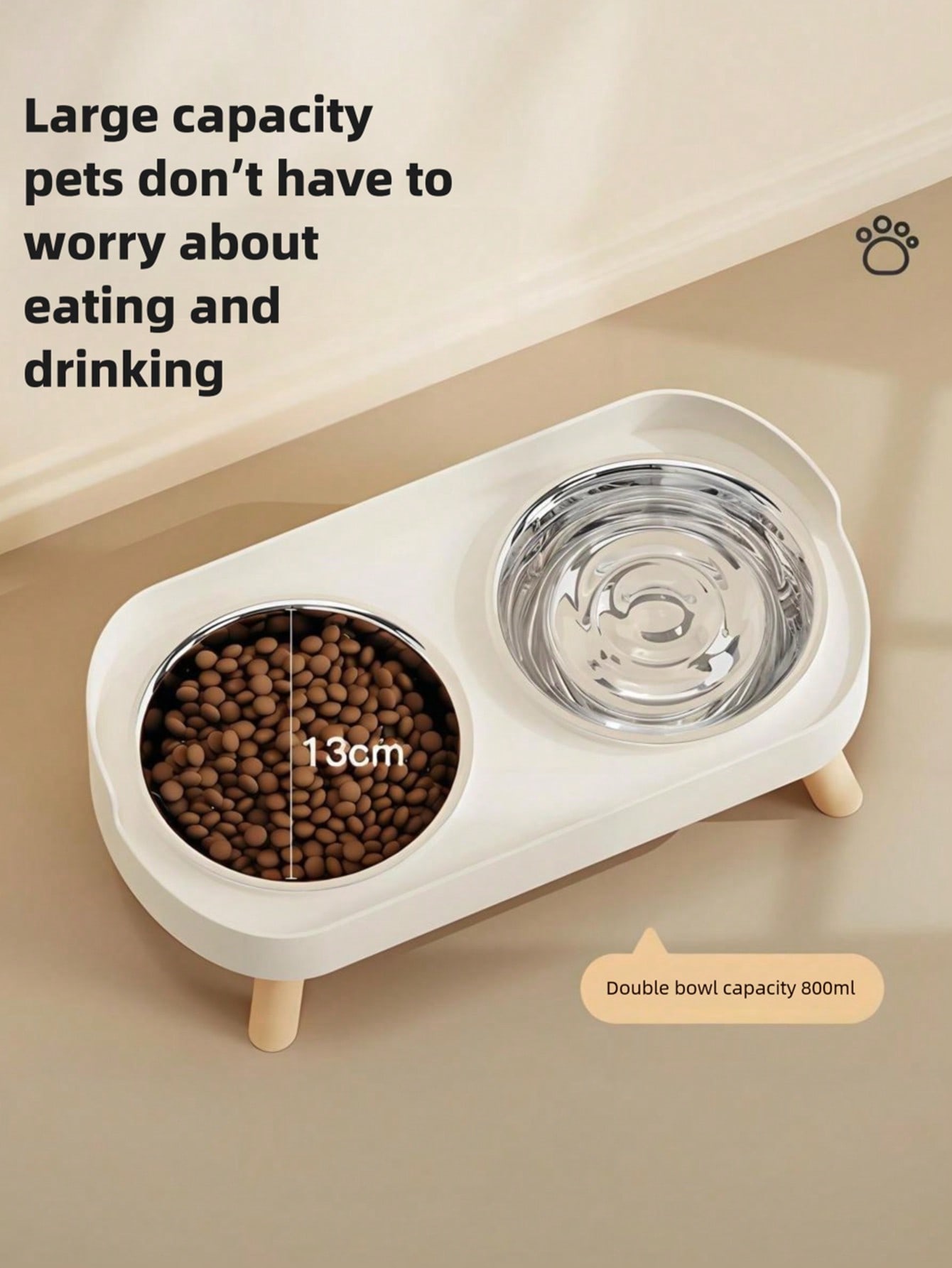 The Elevated Double Pet Bowl Set with Stand is designed to create a neat and organized feeding space for pets. With a structured stand and dual-bowl setup, it allows convenient separation of food and water while maintaining a clean and controlled feeding area.