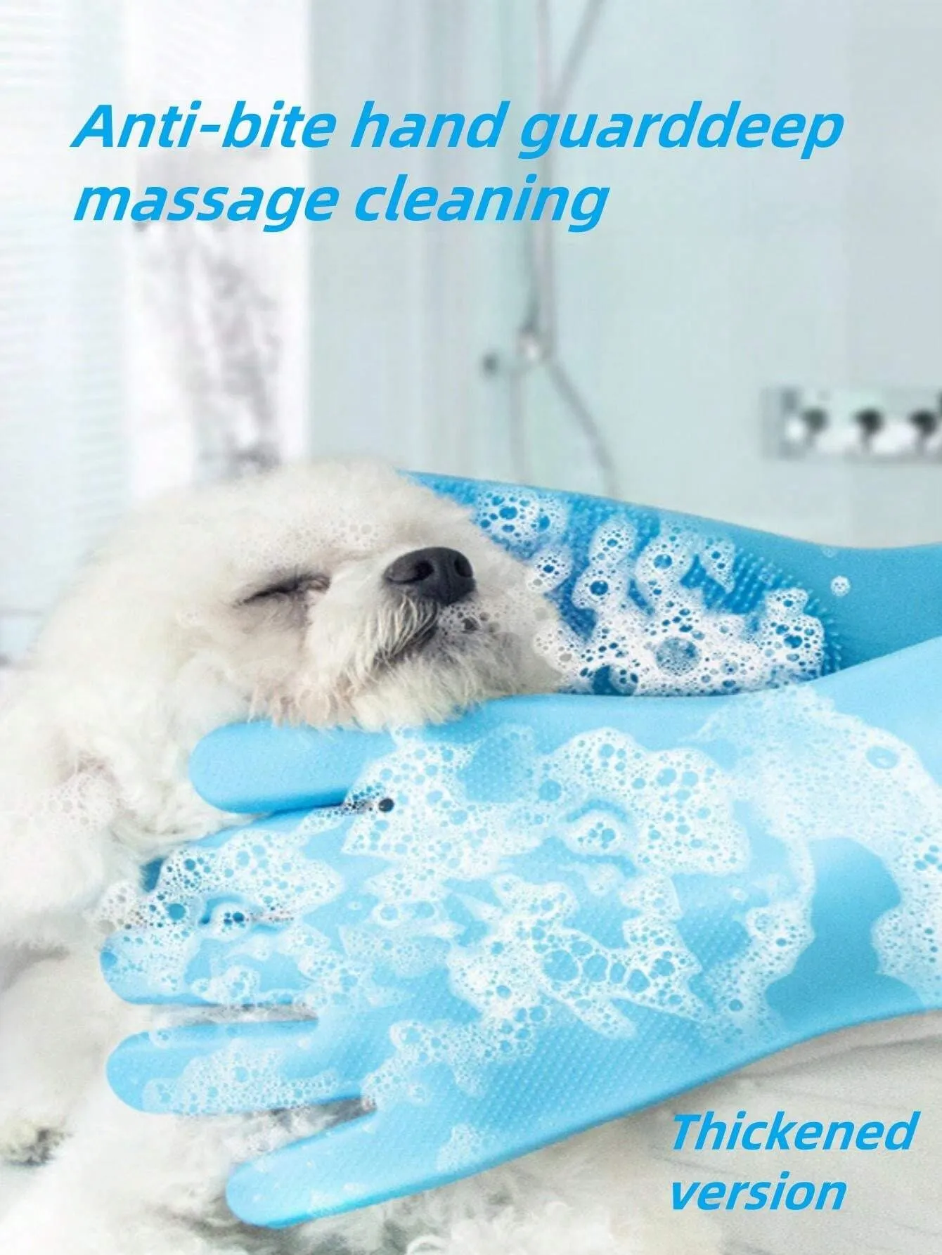 The Silicone Pet Grooming Glove For Dog And Cat Cleaning is a versatile grooming tool designed to support cleaning and hair removal for pets. With its textured surface, it helps lift loose fur while distributing shampoo evenly during bath time. This design allows for a more efficient cleaning process while maintaining a gentle touch during use.