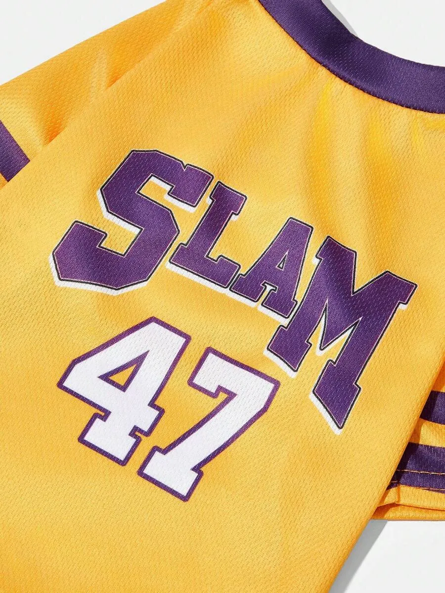 Sports Style Pet Jersey With Ombre Design And Letter Print For Cats And Dogs